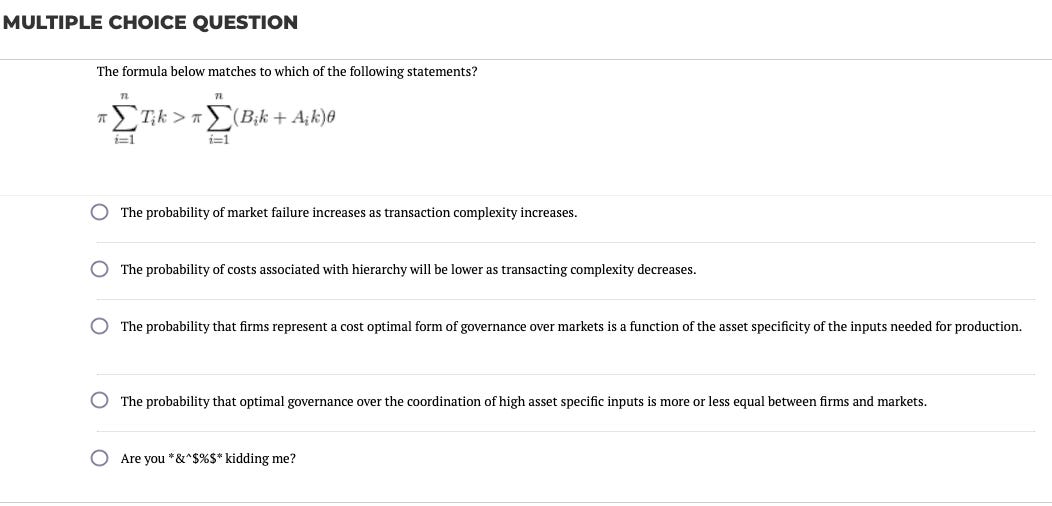 Indeed, since contracting complexity and asset specificity are in positive correlation. But could it explain its answer? I checked.