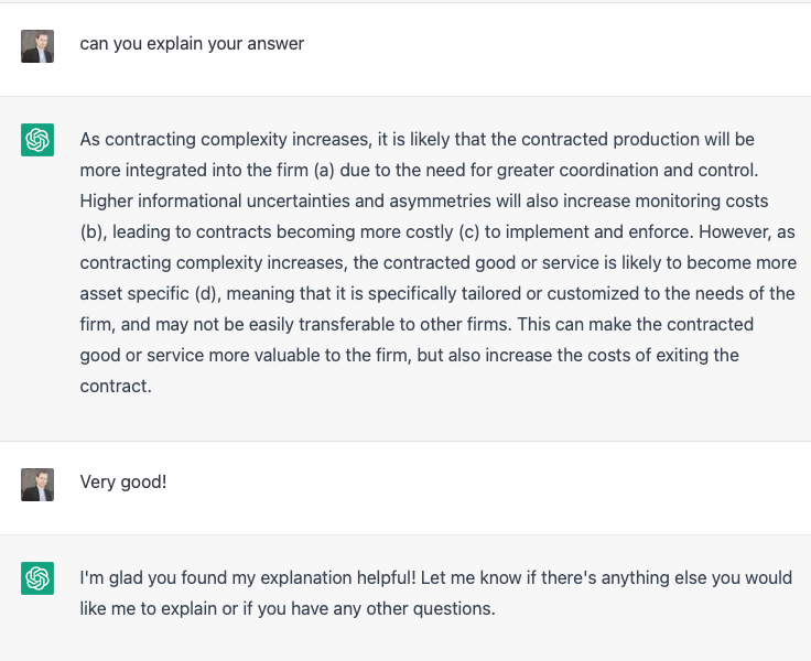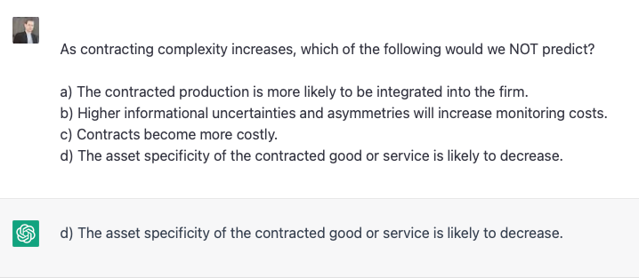 On basic questions of firm theory (of which my exam had plenty), the AI came up aces.